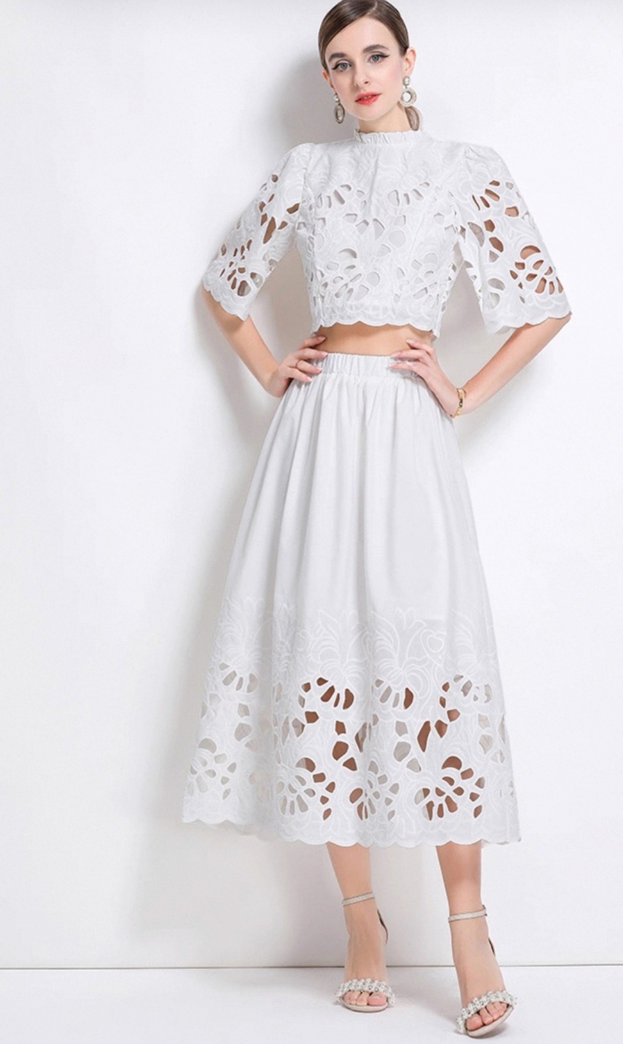 フェミニンな雰囲気のトップスとスカートのセットUP♪