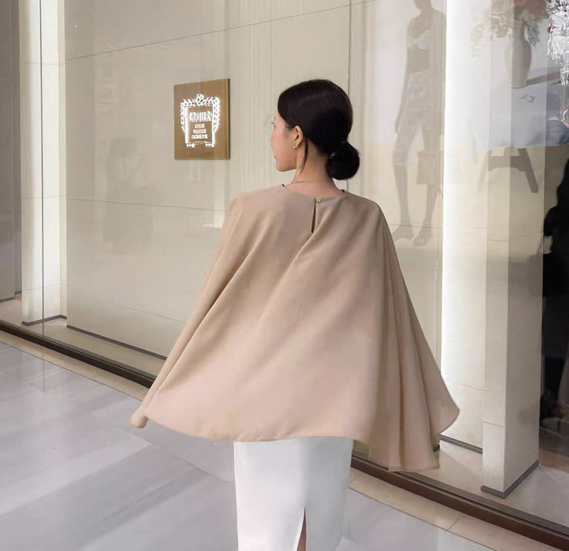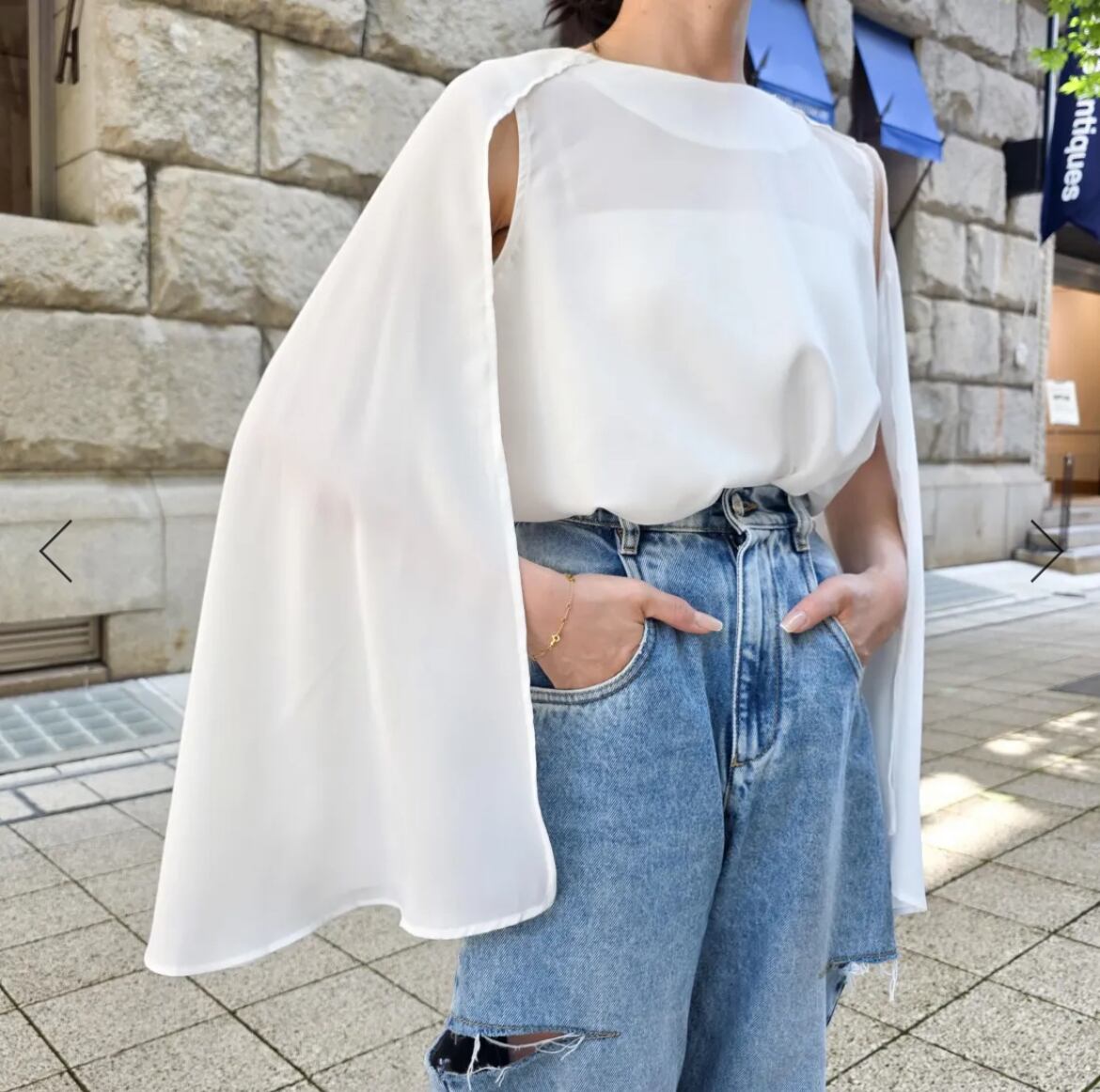 ふんわりとしたケープが、シンプルながらも華やかな印象を与えるブラウスです♪