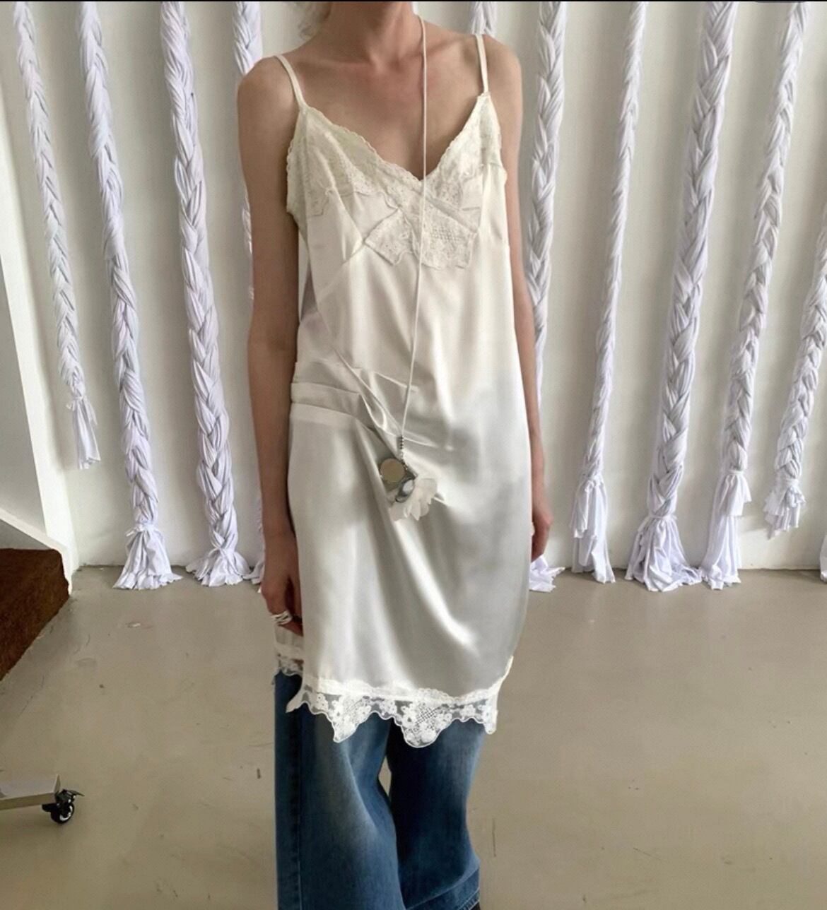 ホワイトサテン♡キャミソールワンピースは、涼しげで洗練されたデザインが特徴です!夏のデイリーファッションからパーティーシーンまで、シーンを選ばずに大活躍しますので、ぜひお見逃しなく♪