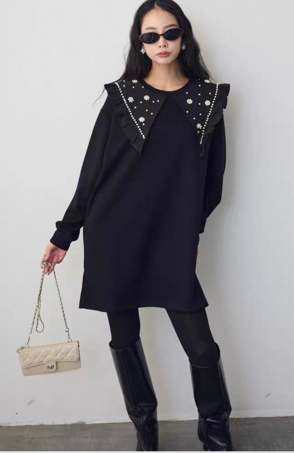 ビッグカラースウェットワンピースです!大きなカラーが存在感を放ち、カジュアルスタイルの中に華やかさを添える一着です♡