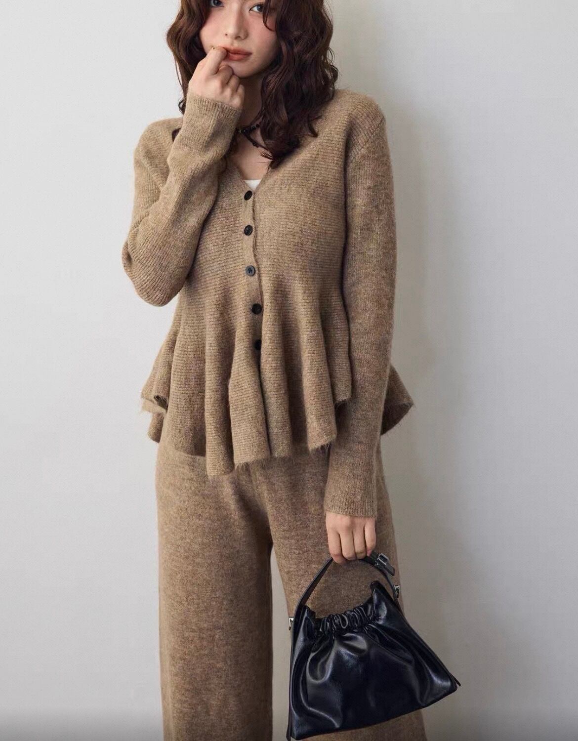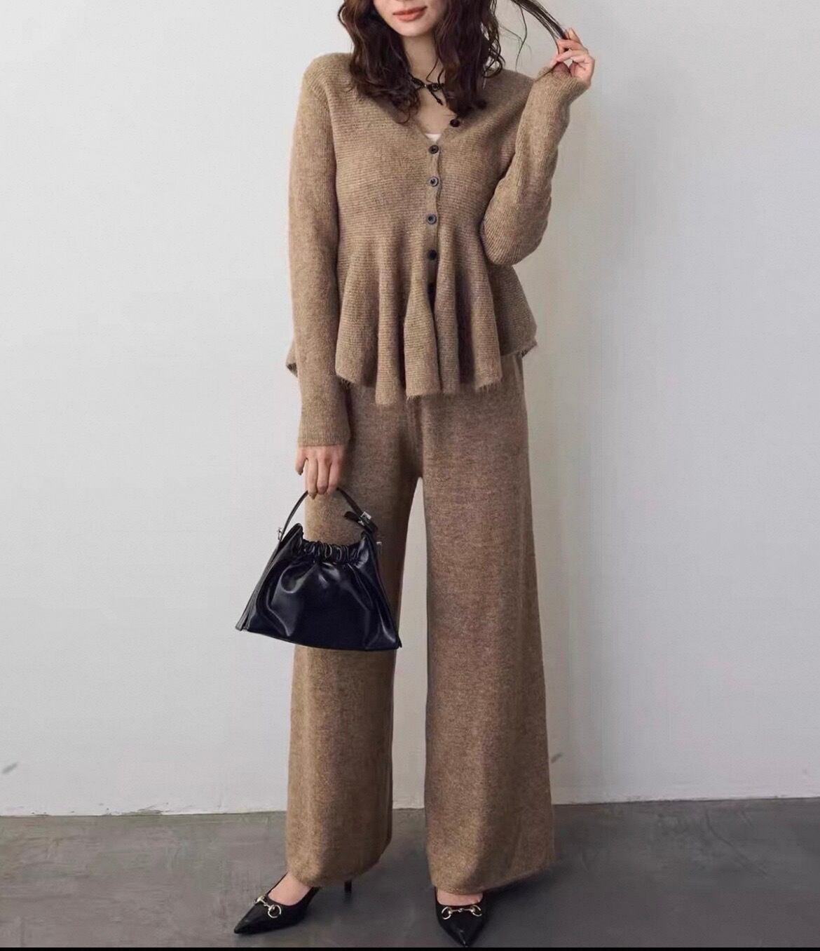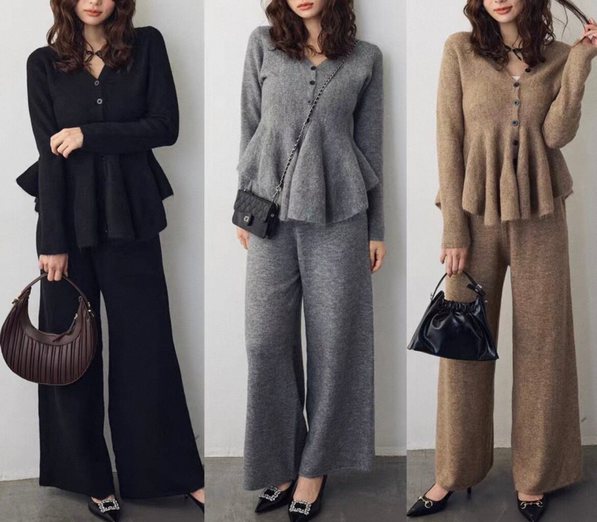 ペプラムカーディガン➕パンツ♡セットアップです!エレガントなペプラムのシルエットが女性らしさを引き立て、カジュアルからフォーマルまで幅広く楽しめる一着です♡