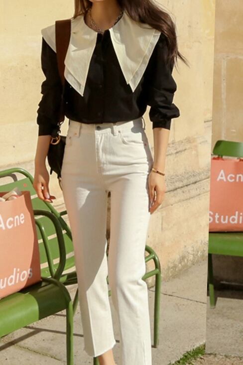 大きな襟がポイントの可愛い長袖ブラウス♡