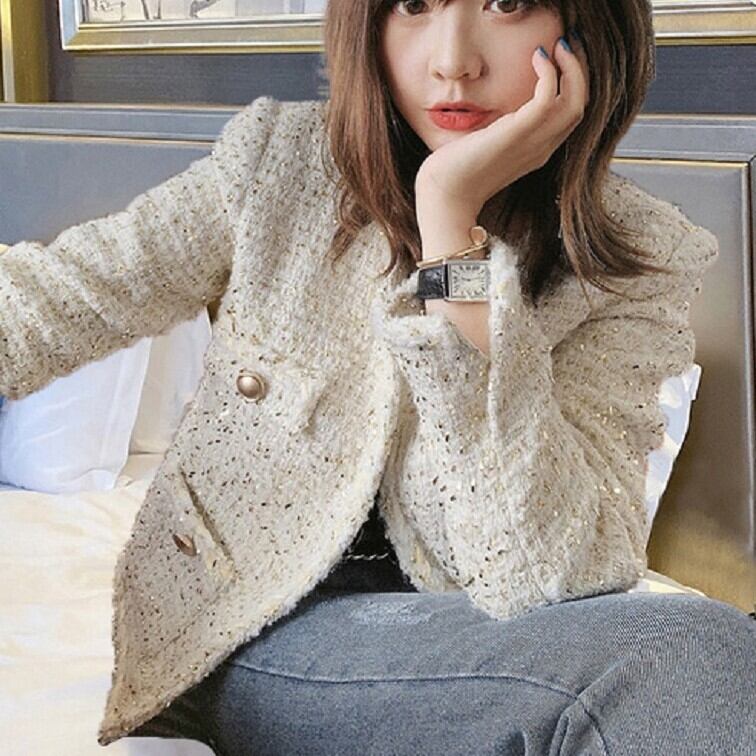 ウール素材で暖かい♥ホワイトベージュのツイードタイプのカーディガンジャケットです♡