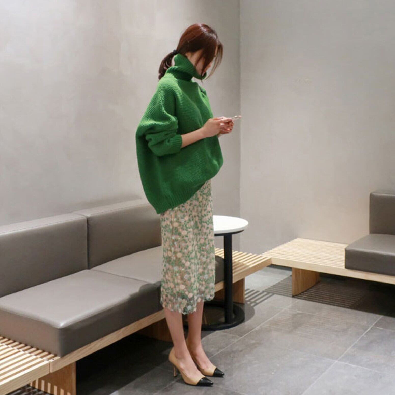 スカートがラグジュアリー感があるので、トップスをトレーナーやセーターなどで