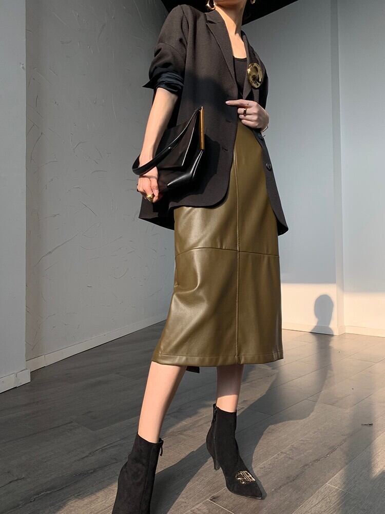 秋といえばアイテムの1つには押さえておきたいレザーのスカート♡