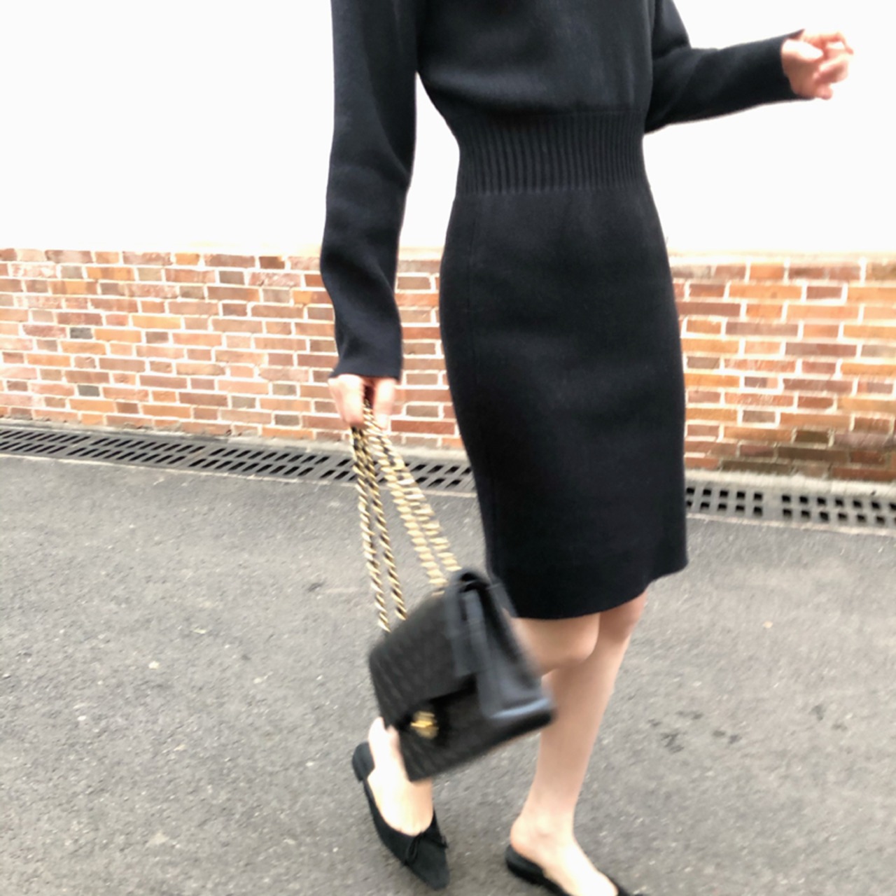 黒のニットのワンピースは持ってる毎年、秋冬は重宝しますよね♪