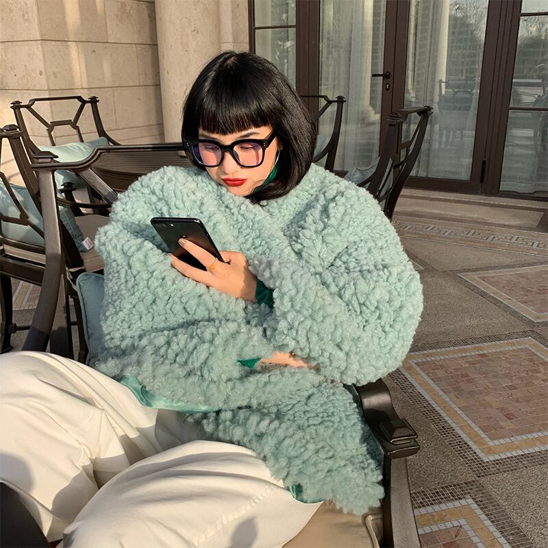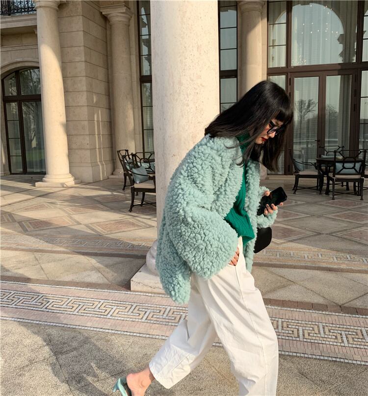 ミントグリーンが綺麗色で可愛い羊の毛で出来たウールコートです♡