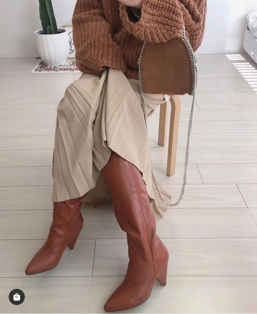 ロングスカートでチラ見せブーツ効果や、あえてショート丈のボトムで