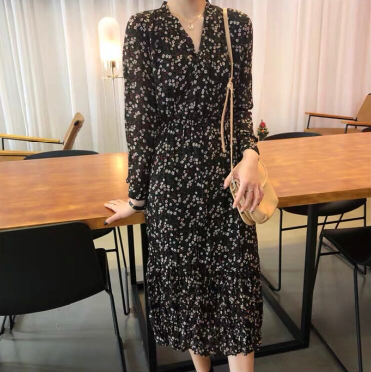 色:ボアコート・ブラウン 小花柄ワンピース・ブラック
