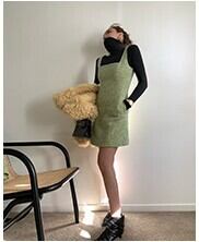 タートルネックやブラウス、半袖ニットなどをインナーに着て
