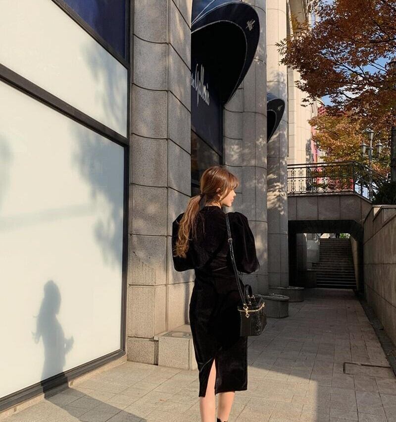ベロア素材がまたレトロでクラシックな雰囲気のあるワンピース♡