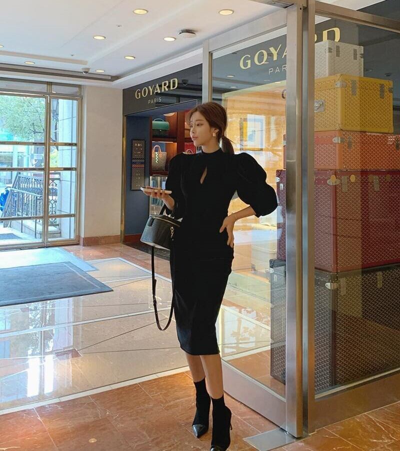 胸元のカットがちょっぴりセクシーでパフスリーブがまた可愛い
