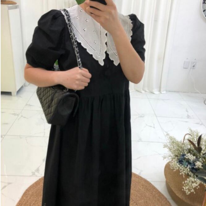 トレンドのメイド風ビッグ襟付きワンピースです♡