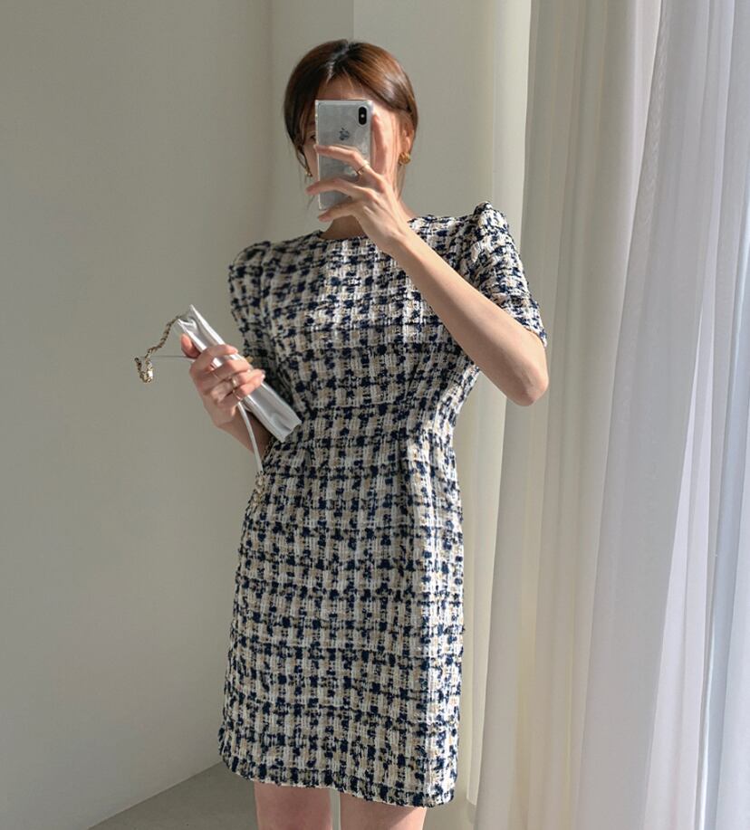 パフスリーブが可愛いツィードワンピース♡