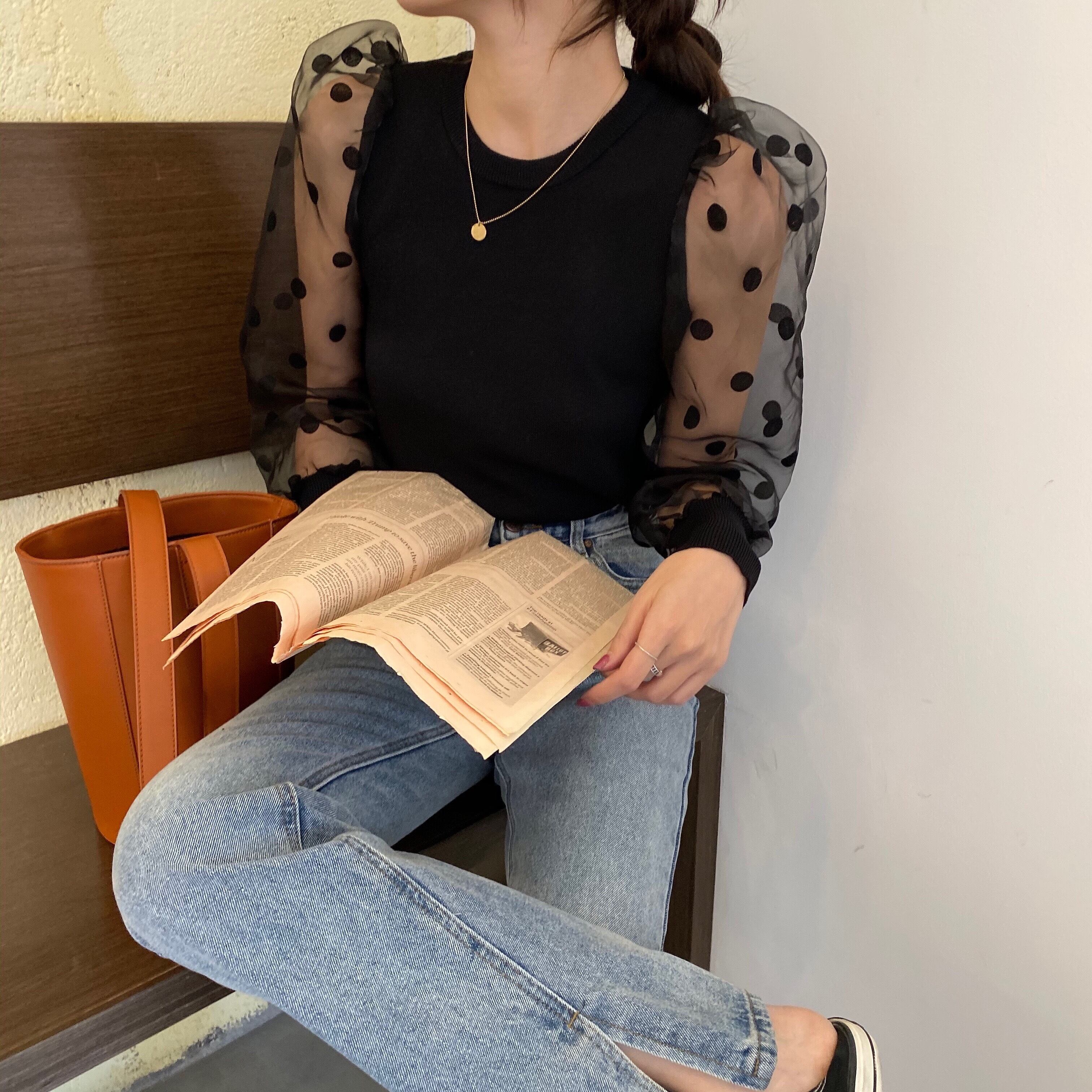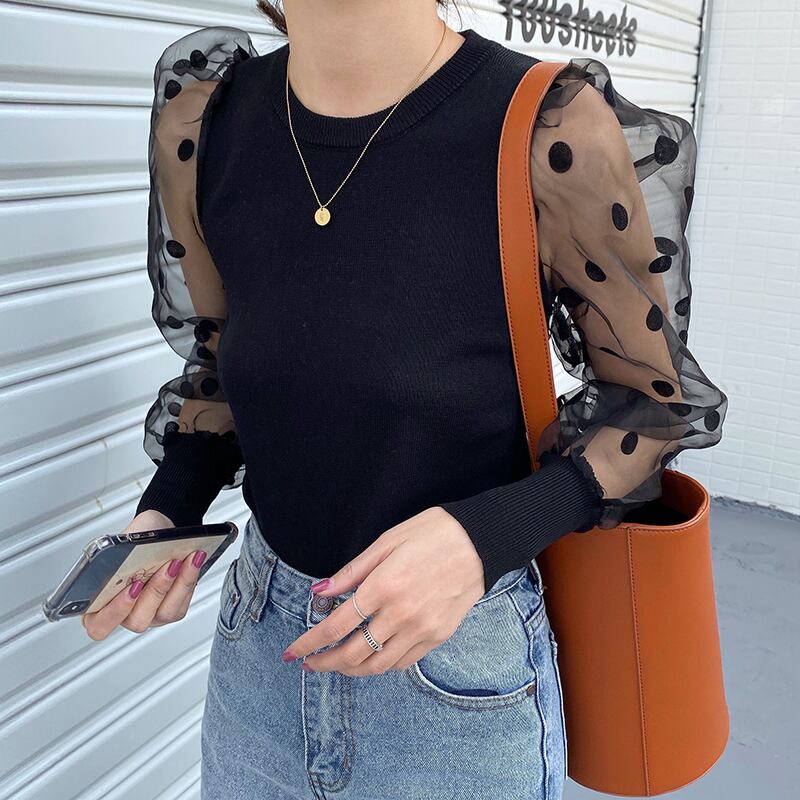 シースルーのパフスリーブでドット柄が可愛いレディライクなトップスです♡