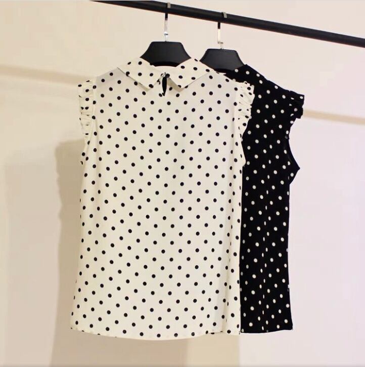 ドット柄のフリル袖が上品ガーリーで
