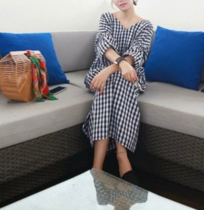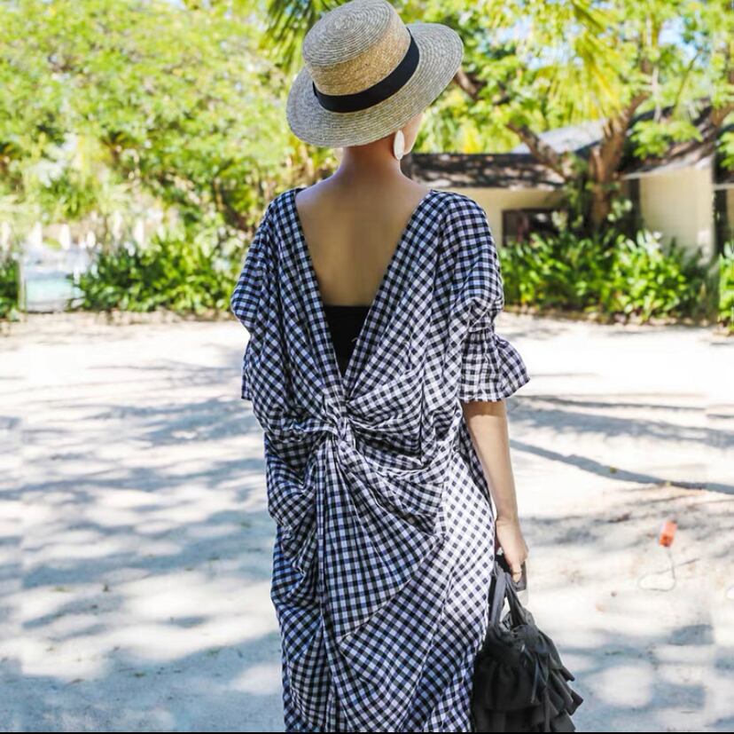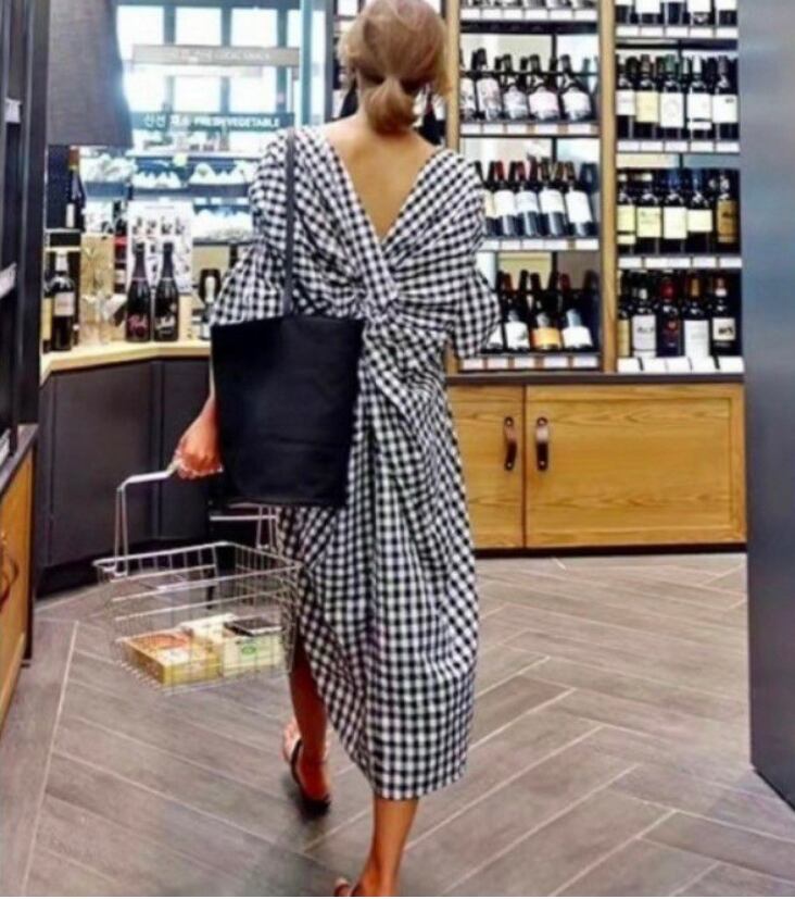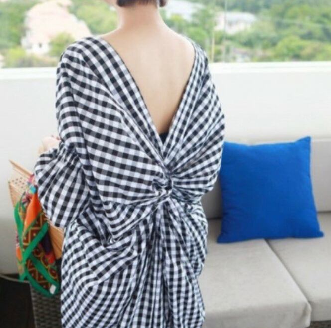 バックツイストが可愛いギンガムチェックワンピース❤️